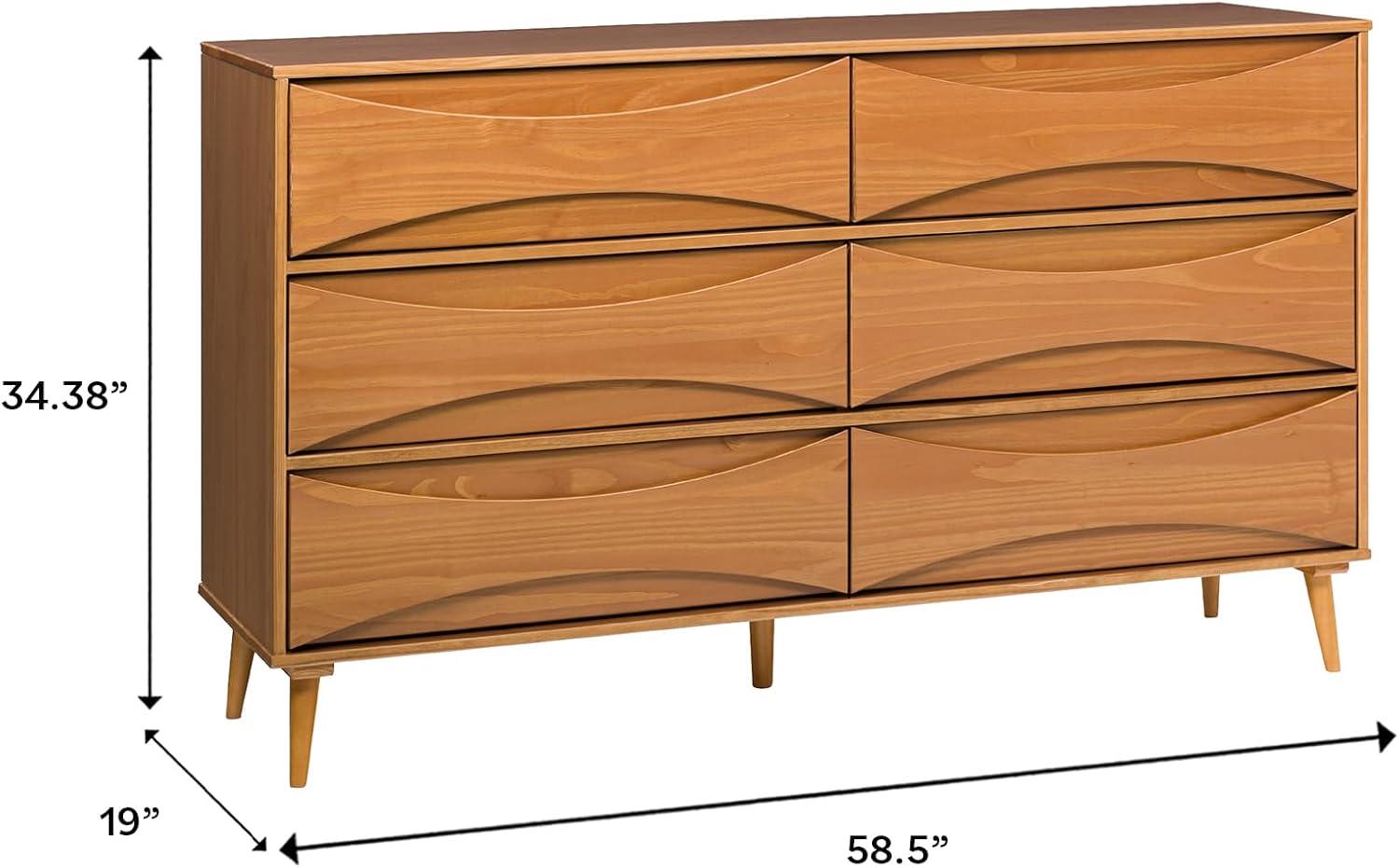 Walker Edison Atticus Mid-Century Modern Detailed 6-Drawer Solid Wood Dresser, 59 Inch, Walnut(Caramel)