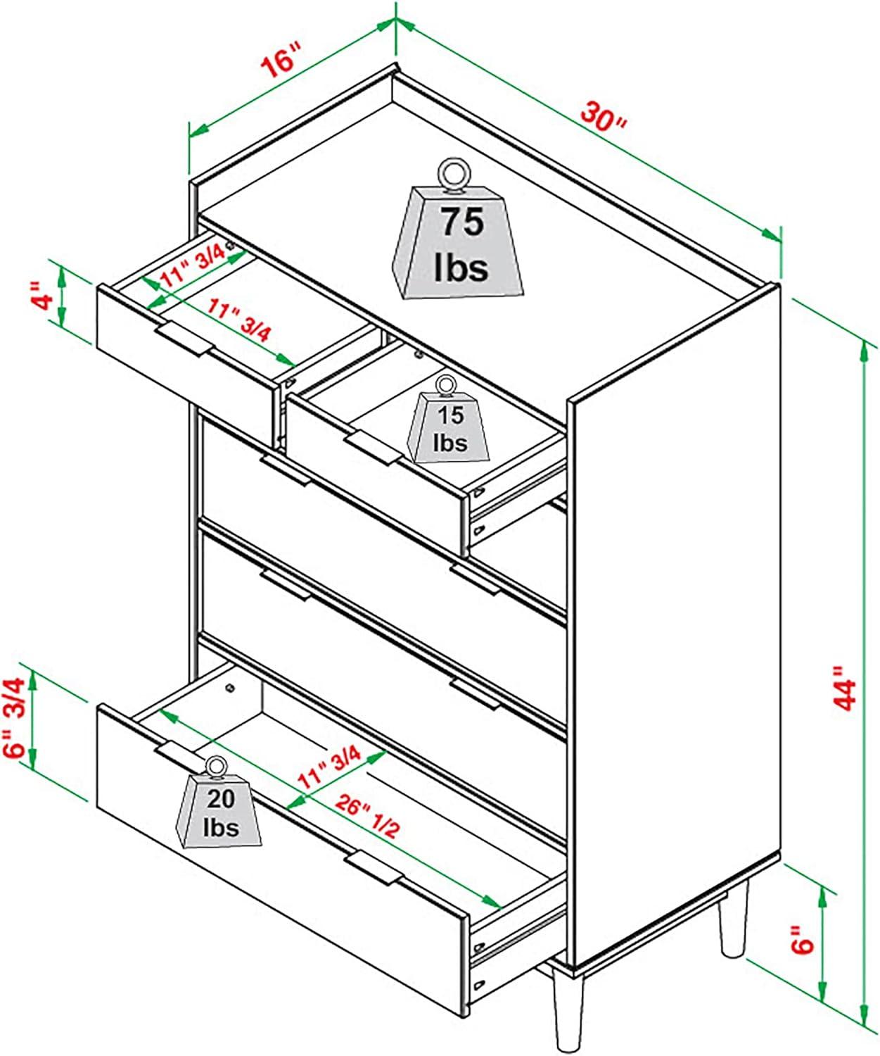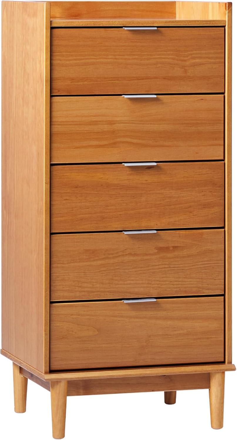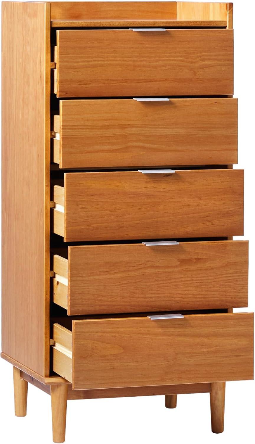 Walker Edison Blythe Scandi Minimalist 5-Drawer Solid Wood Dresser, 43 Inch, Caramel