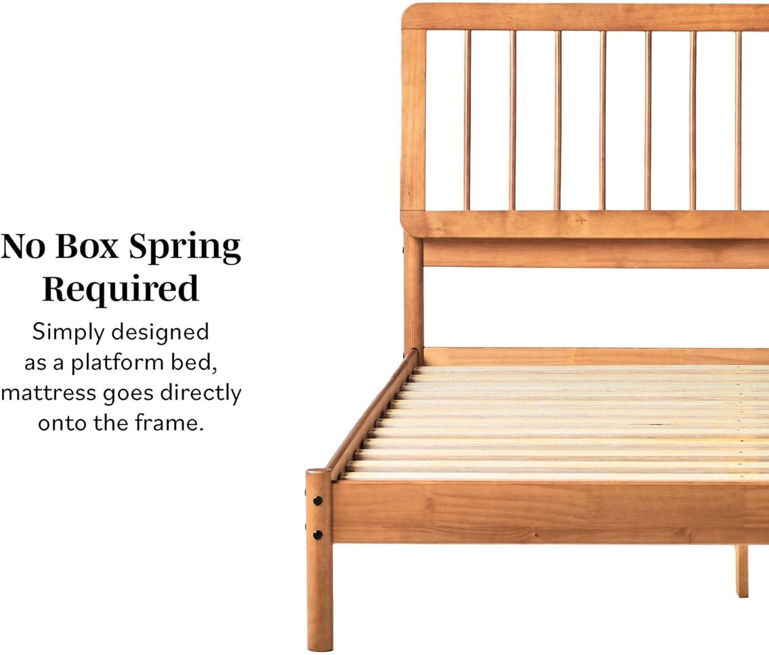 Walker Edison Clemente Mid-Century Modern Spindle Headboard King Bedframe, King Size, Caramel(Natural Pine)