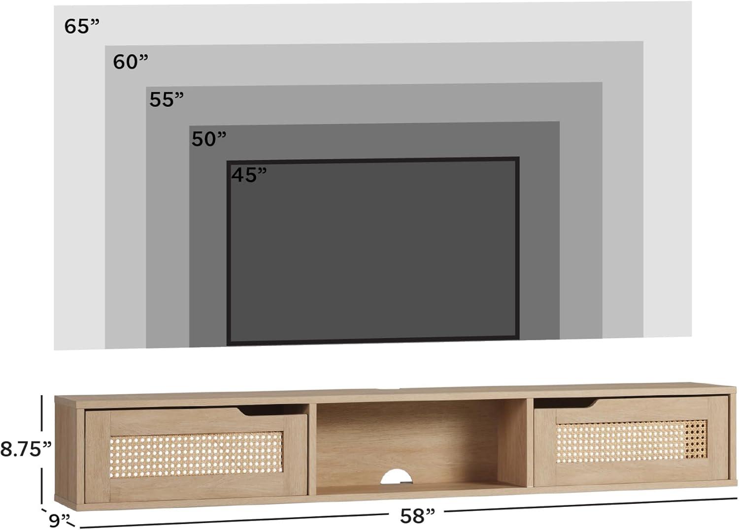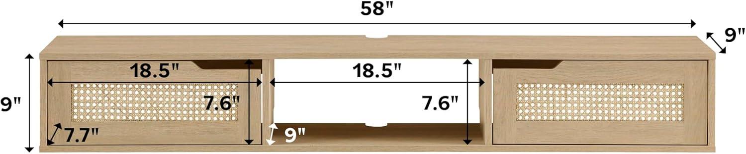 Walker Edison Destin Modern Rattan Flip-Down-Door Wall-Mounted Floating TV Stand for TVs up to 65 Inches, 58 Inch, Coastal Oak(Coastal Oak)