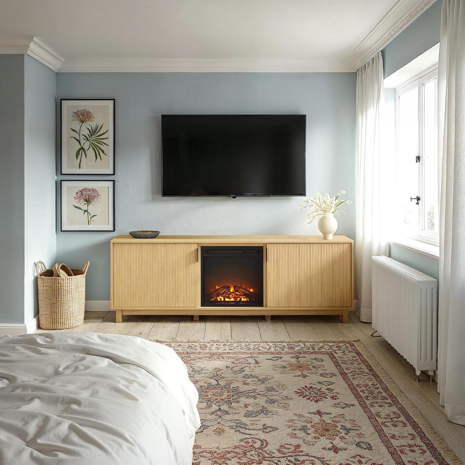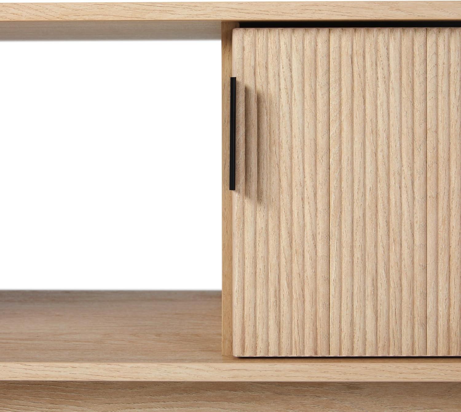 Whether you’re into art-deco design, Japandi interiors, or a modern motif, this is the TV stand you’ve been looking for. With its sleek and subtle hardware, reeded double doors, and fuss-free open storage cubby, your tech will be perfectly perched in style. Its low profile leaves room for you to display your wall-mounted TV, décor, or wall art, yet it offers enough open and closed storage for all your entertainment center essentials. A warp-resistant MDF wood build and stunning yet durable laminate finish lend form, function, and a fashionable aesthetic.