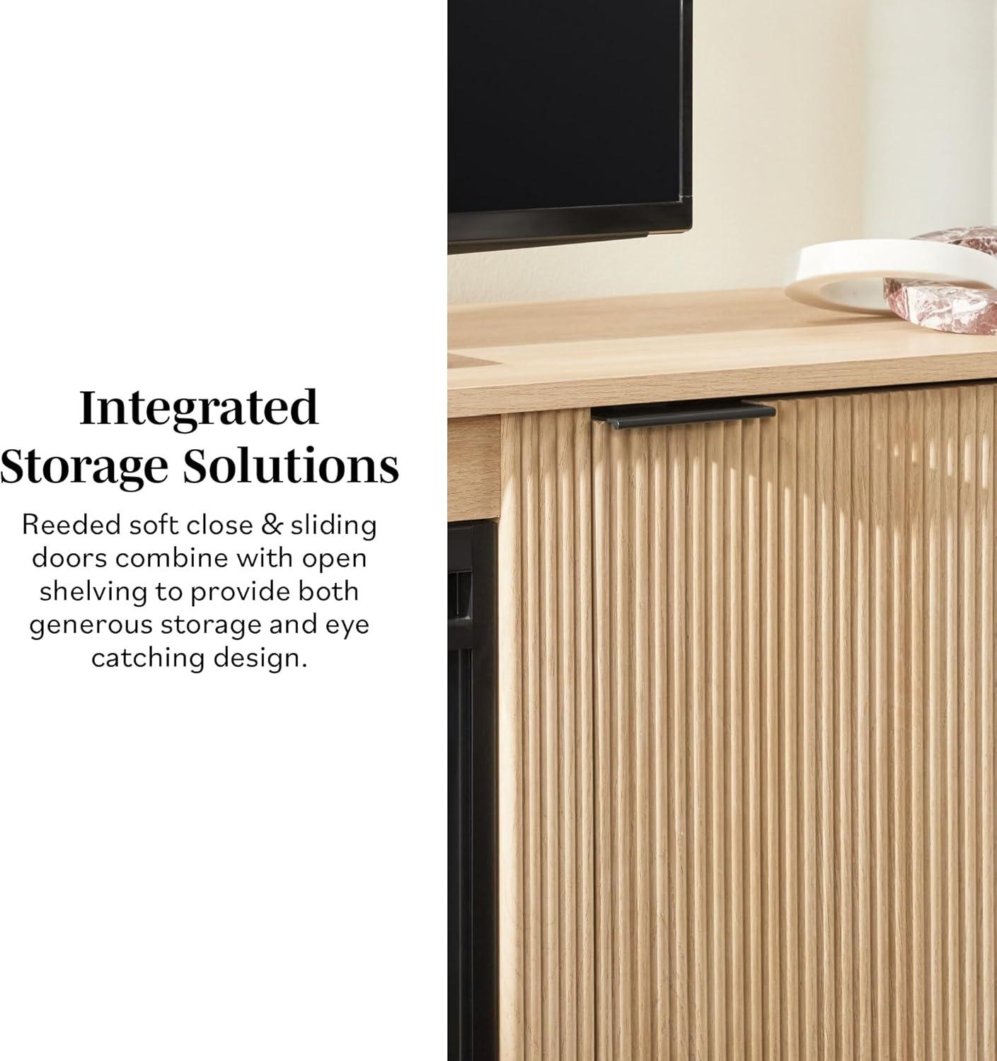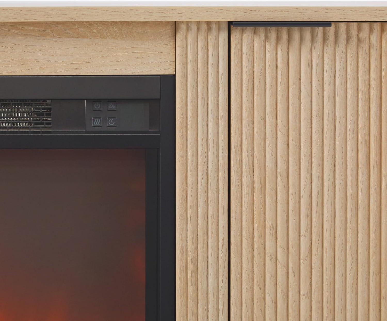 Walker Edison Chloe Reeded TV Stand with Fireplace Insert, 65 Inch, 60 inch, Coastal Oak(Coastal Oak)
