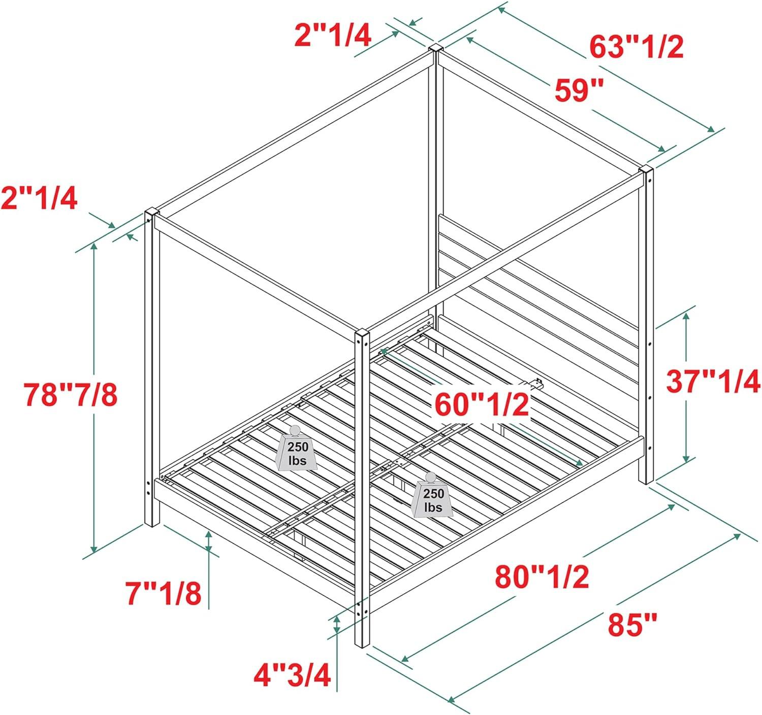 Walker Edison Isla Slatted Headboard Canopy Bedframe, Queen, Black(Natural Pine)