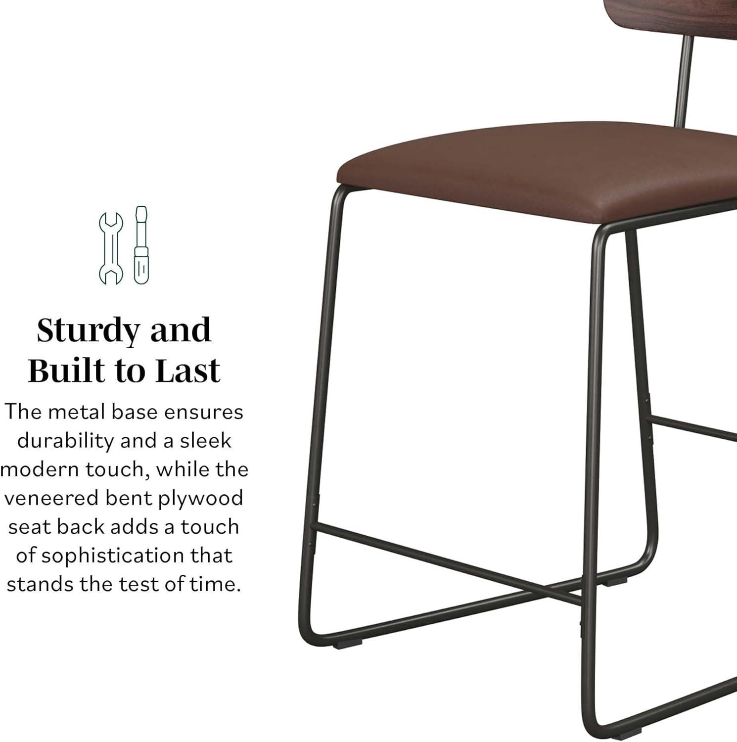 Walker Edison Modern 2-Piece Minimalist Counter Stools with Wooden Back, Set of 2, Black(Brown)