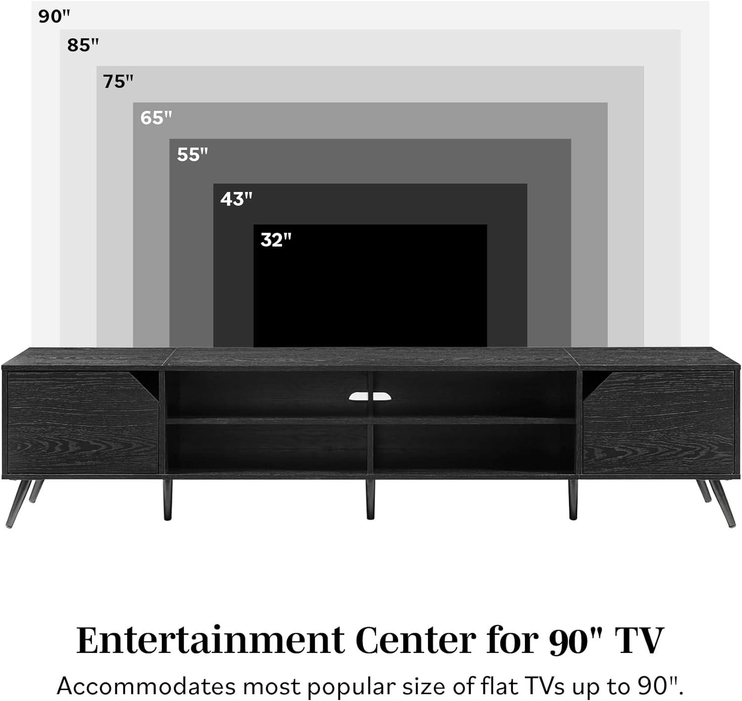 Walker Edison Nora Modern Minimal Open-Shelf TV Stand for TVs up to 90 Inches, 80 Inch, Black(Black)