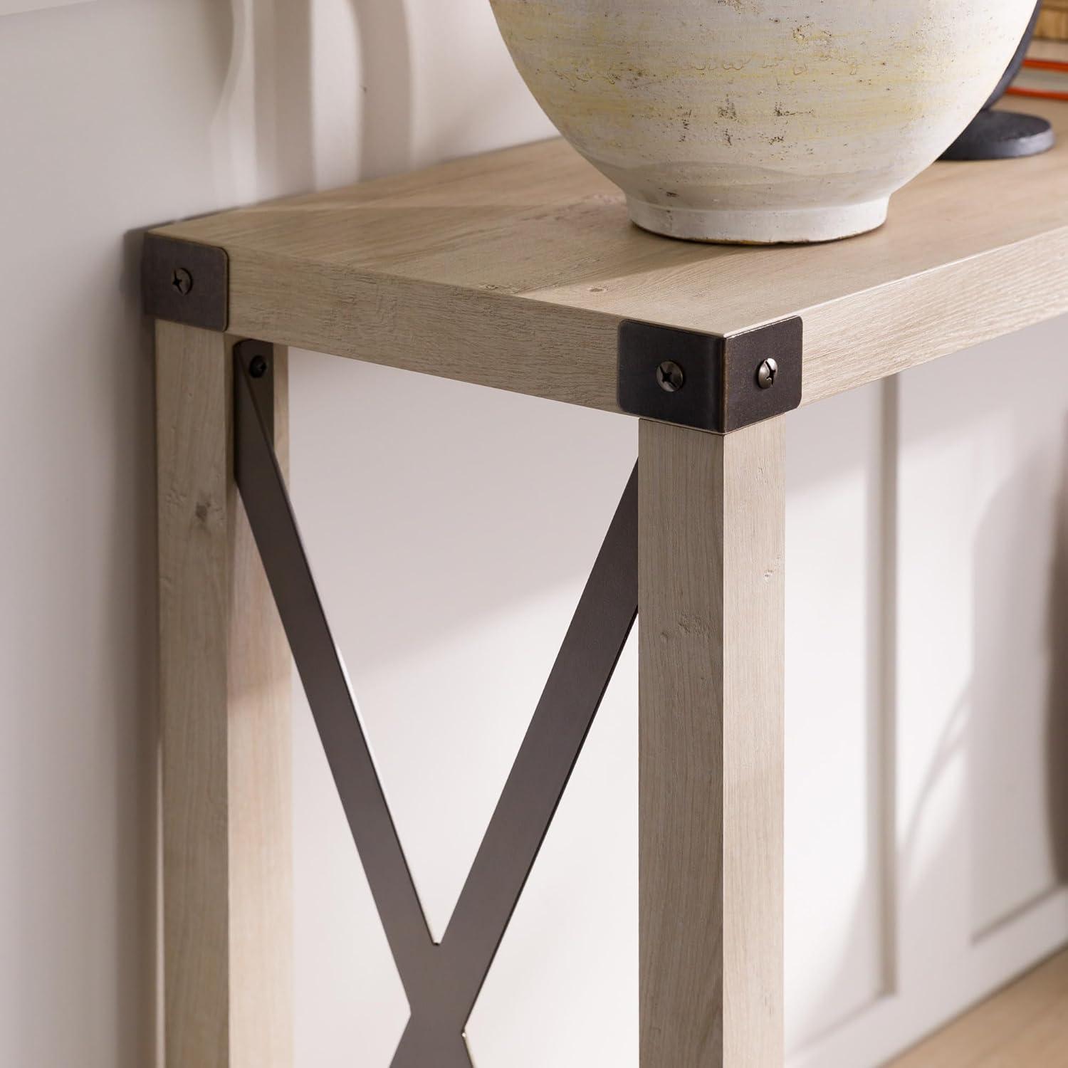 INDUSTRIAL FARMHOUSE ENTRY TABLE: This stylish entry table blends industrial and farmhouse designs, making it a perfect addition to your entryway.