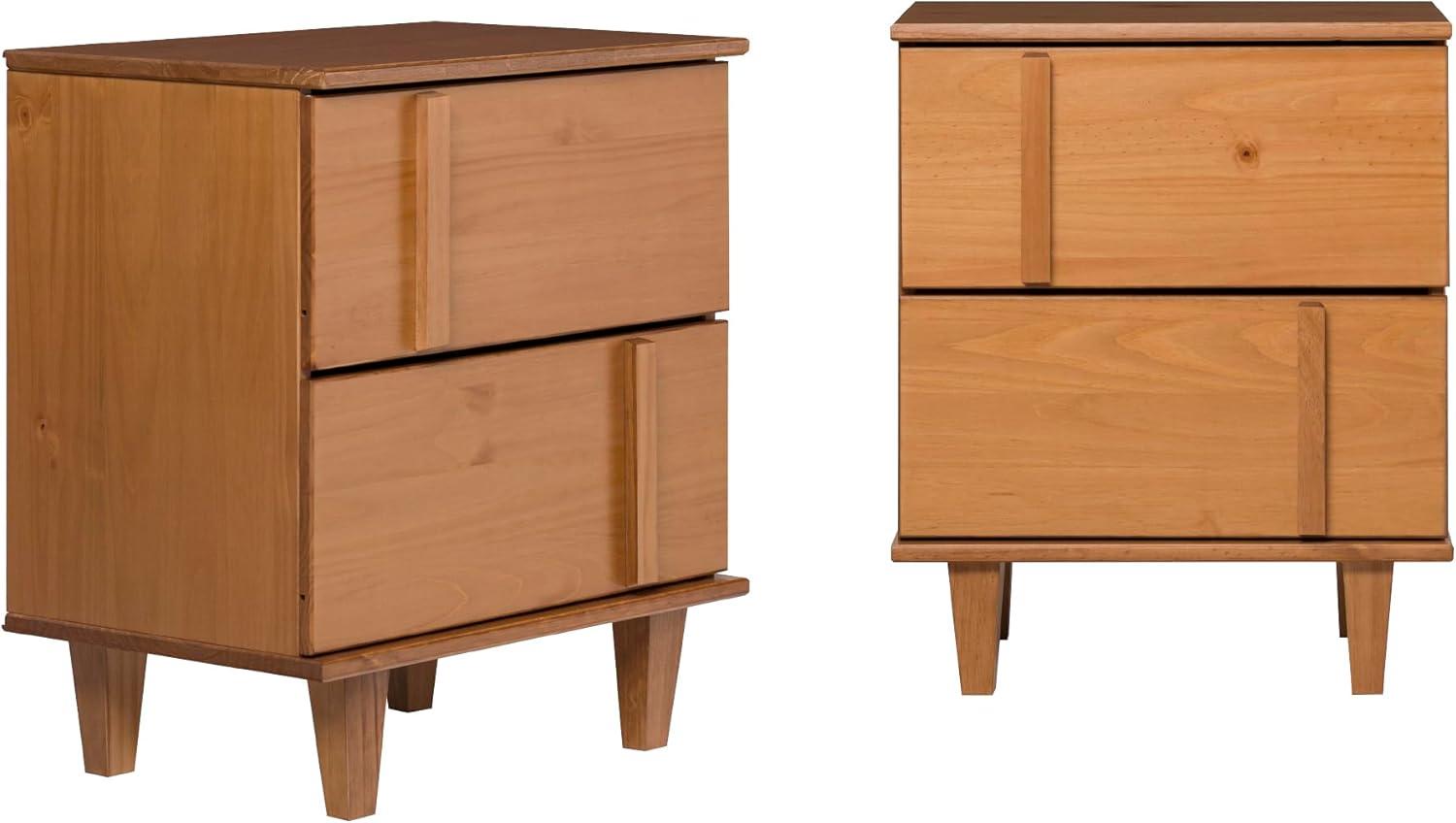 Walker Edison Sprague Contemporary Detailed Drawer Solid Wood Nightstand, 20 Inch, Caramel(Caramel)