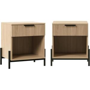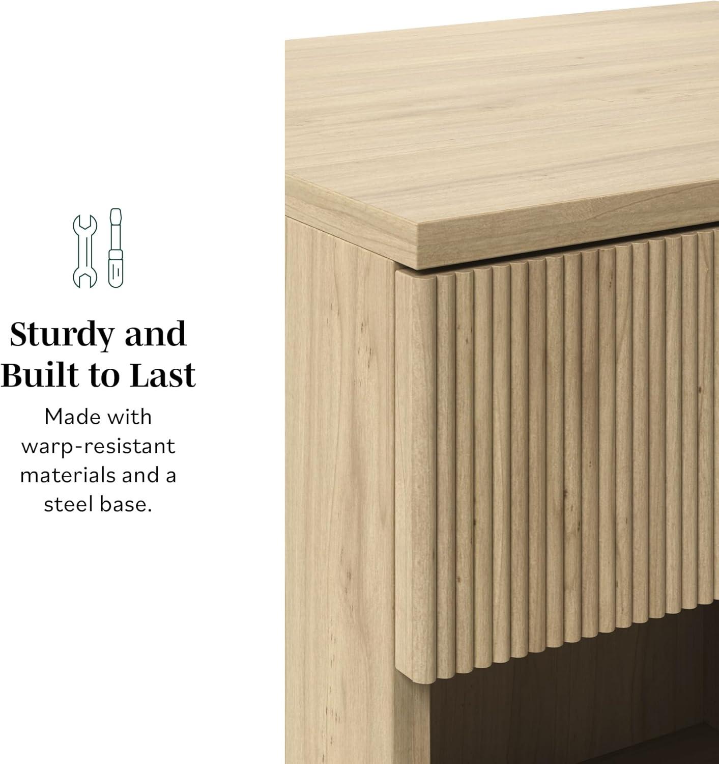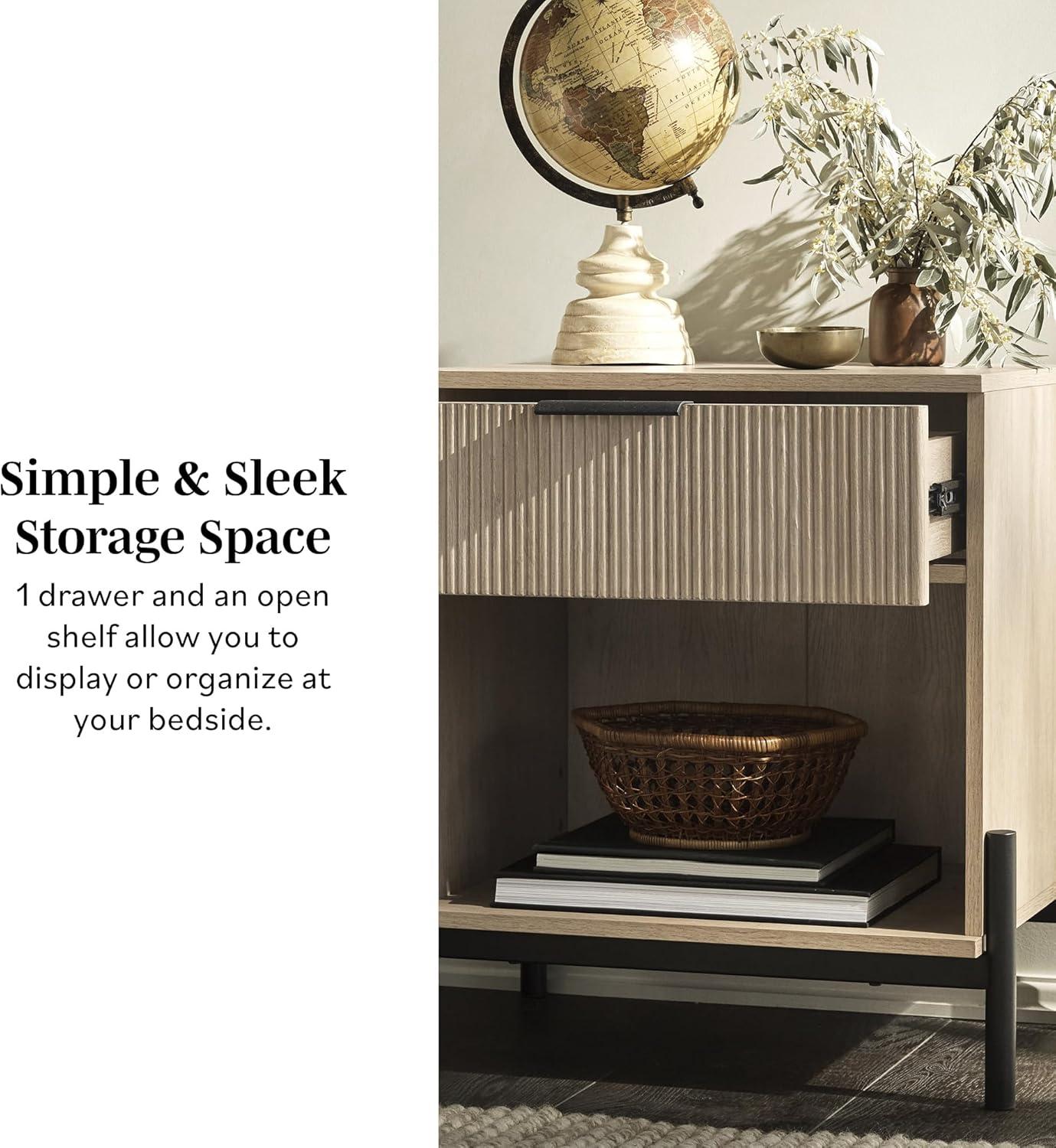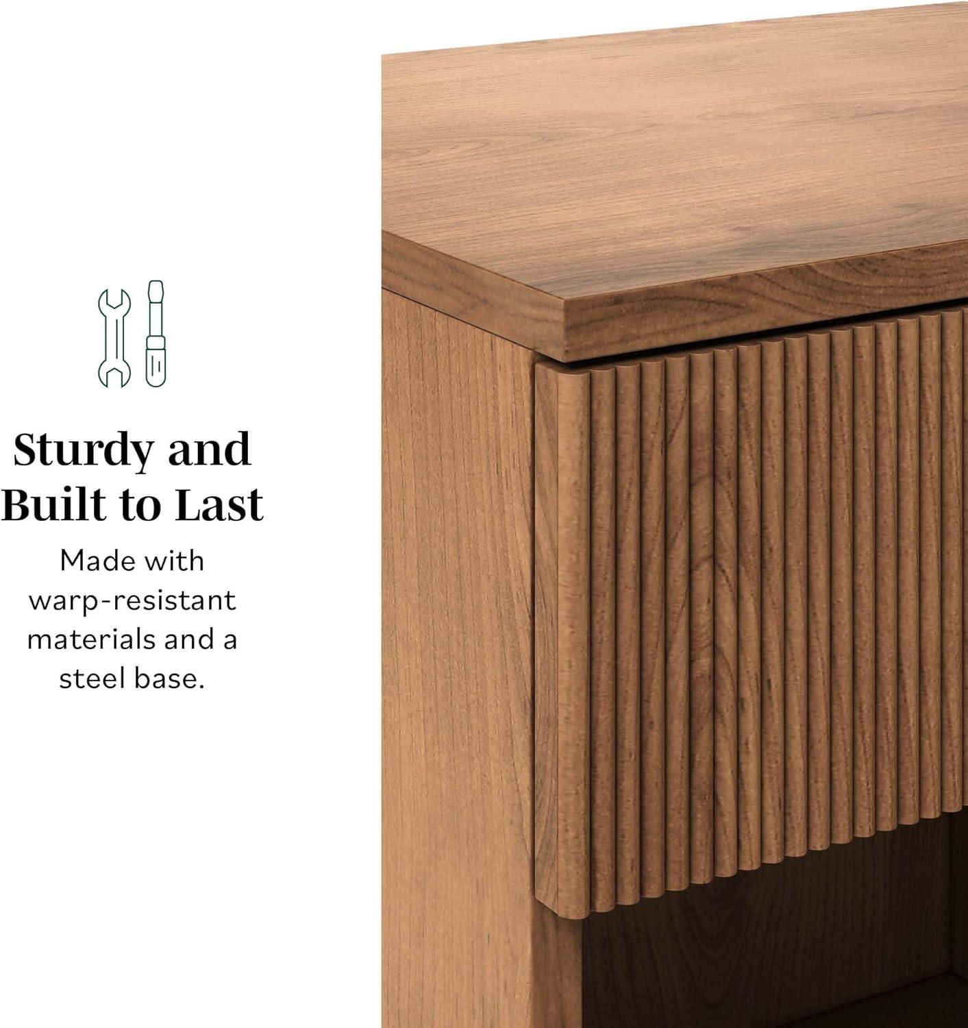 • Walker Edison Paris Modern Reeded-Drawer Nightstand with Open Storage, 24 Inch, Mocha(Coastal Oak)